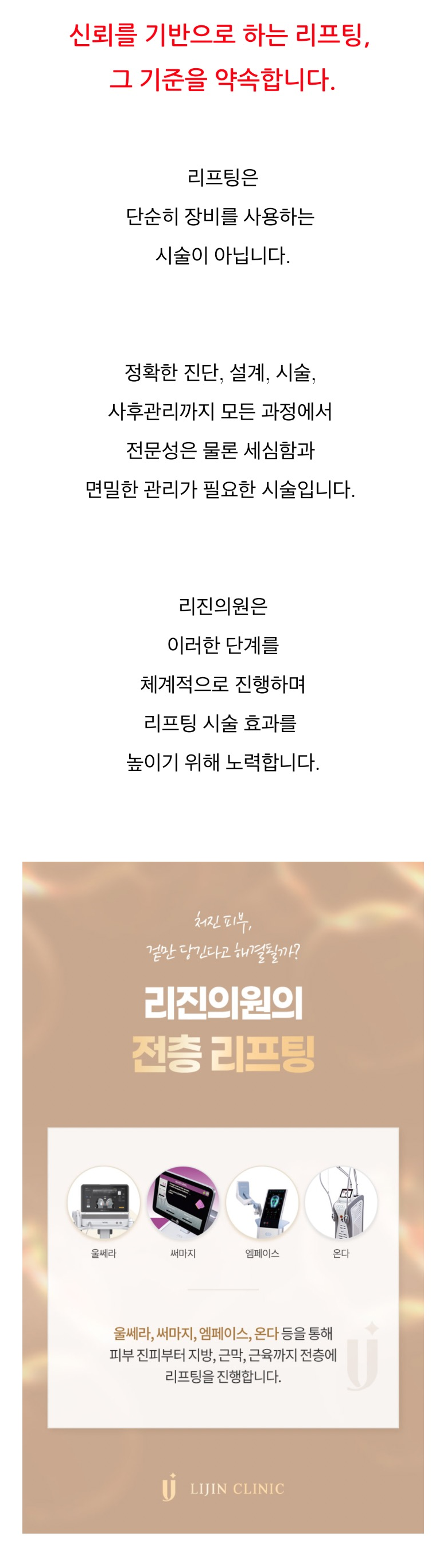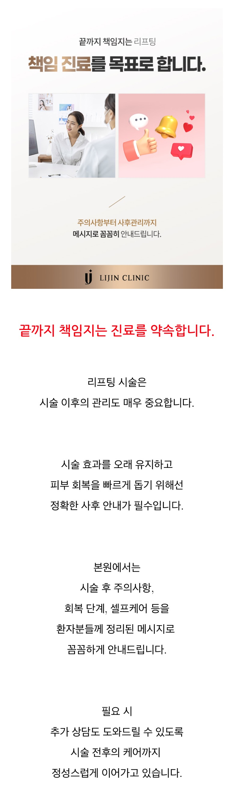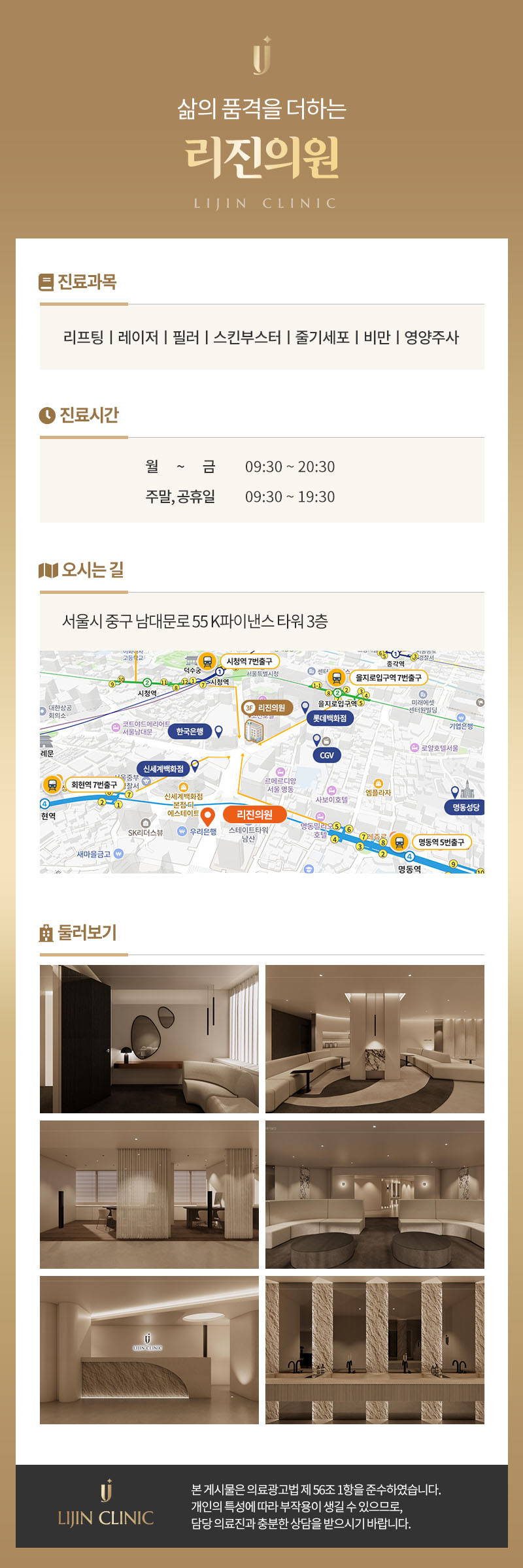 “리프팅 시술은 피부 탄력 회복과 주름 개선에 매우 효과적이지만, 시술 후 관리도 중요합니다. 꾸준한 관리와 클리닉의 전문적인 처방을 함께 진행해야 오랫동안 효과를 유지할 수 있습니다.” – 명동역 피부과 전문의
